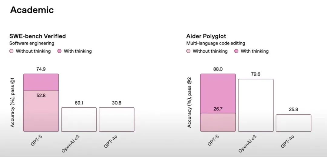 Especially in the field of programming, at least half of the nearly one and a half hours of the conference were about programming. "GPT-5 is the best programming model in the world," said Greg Brockman, President of OpenAI.
