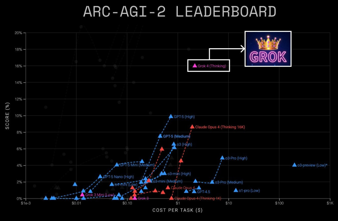 In the Humanity's Last Exam test, GPT-5 Pro achieved an accuracy rate of 42.0% with tools enabled, slightly lower than the 44.4% of the Grok 4 Heavy model. In the ARC-AGI-2 benchmark, Grok-4 (Thinking) scored 16.0%, while GPT-5 (High) scored only 9.9%.