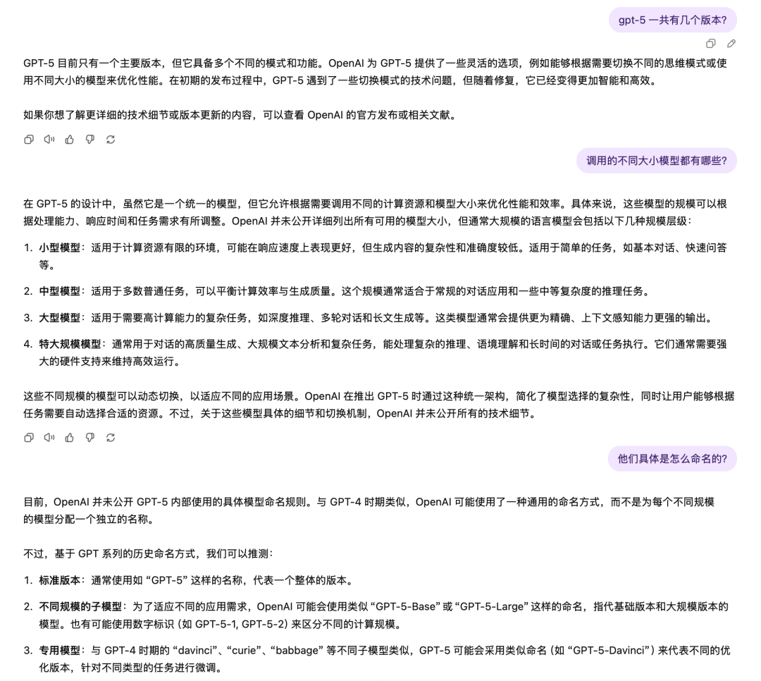 But a practical comparison by "Shangshan" between the current GPT-5 and GPT-4o models revealed that GPT-5 still performed worse than GPT-4o in some simple questions. For example, when asked about the different versions of GPT-5, GPT-5 could not provide an accurate answer. There were also a large number of users on social platforms who emphasized that GPT-5's answer quality was inferior to GPT-4o even after Sam said the issue had been fixed.