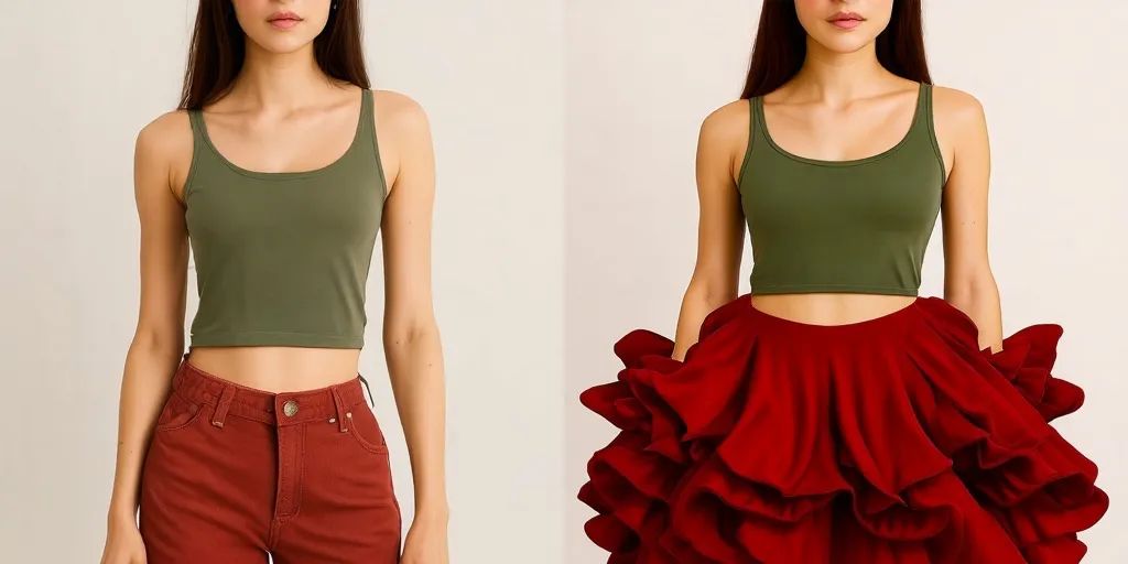 Recently, the popular meme "basic items shouldn't be paired with basic items, upper body basic, lower body not basic" emerged. We asked UniPic 2.0 to alter the lower body to a coordinating yet exaggerated outfit of the same color scheme, and it transformed the pants into a red poof skirt.