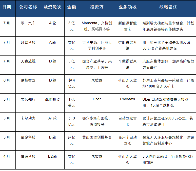 Based on the investment and financing dynamics in the first half of 2025, the capital layout in the field of autonomous driving is exhibiting three major trend changes: