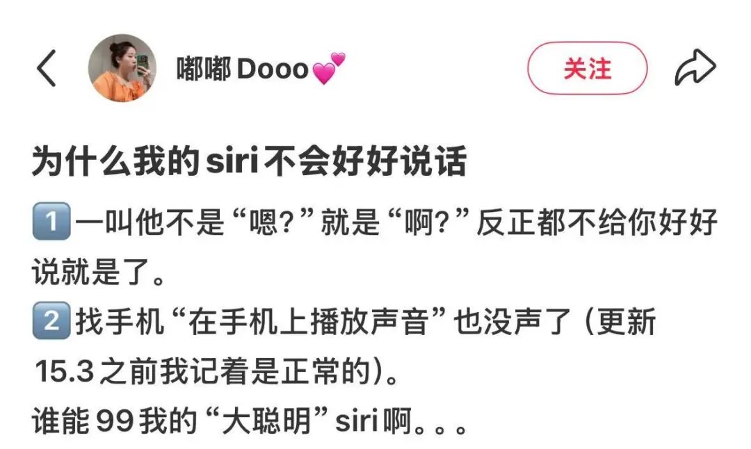 However, a decade later, Xiaohongshu is filled with posts complaining about #SiriBeingTooStupid#.