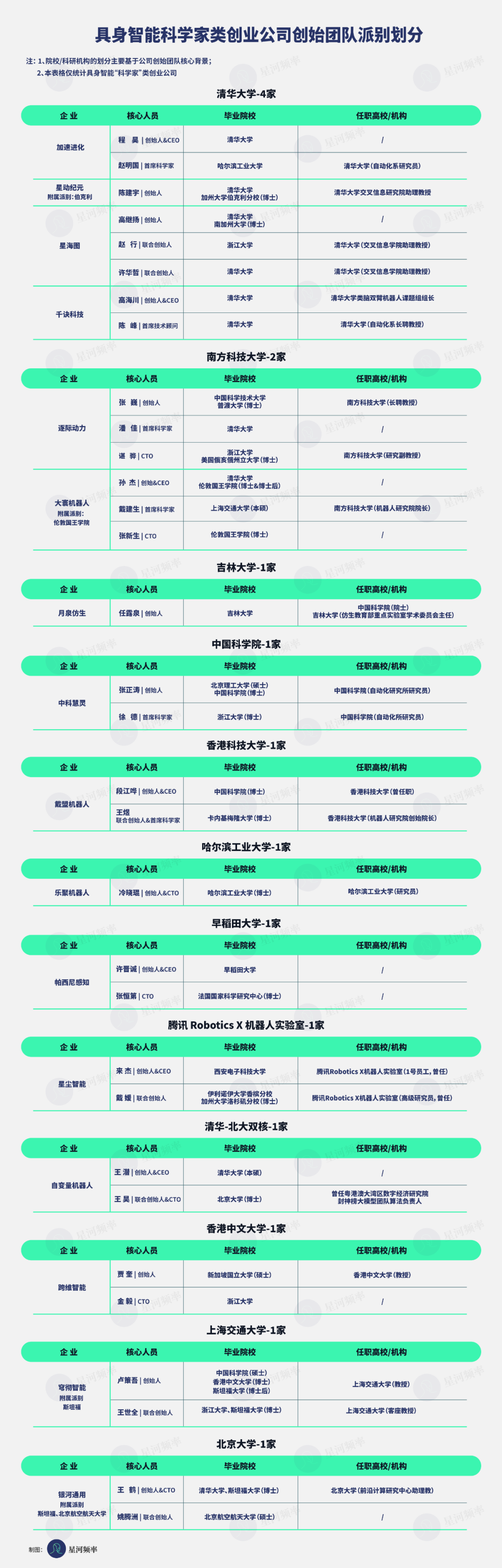 Among the 32 core companies in the embodied intelligence sector we analyzed, 16 were founded or led by scientists from prestigious universities like Tsinghua, Peking, Shanghai Jiao Tong, Zhejiang, Harbin Institute of Technology, and overseas institutions such as Berkeley and Stanford.