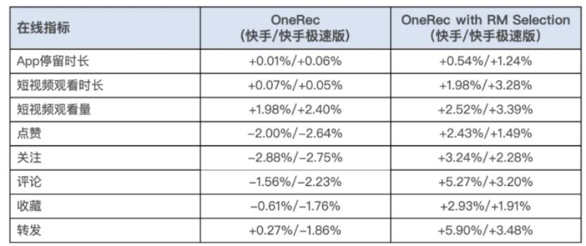 We can directly observe the results. Kuaishou conducted a one-week 5% traffic AB test after the launch of OneRec, similar to a head-to-head experiment in the pharmaceutical industry, and achieved positive gains across all interaction metrics such as likes, follows, and comments.