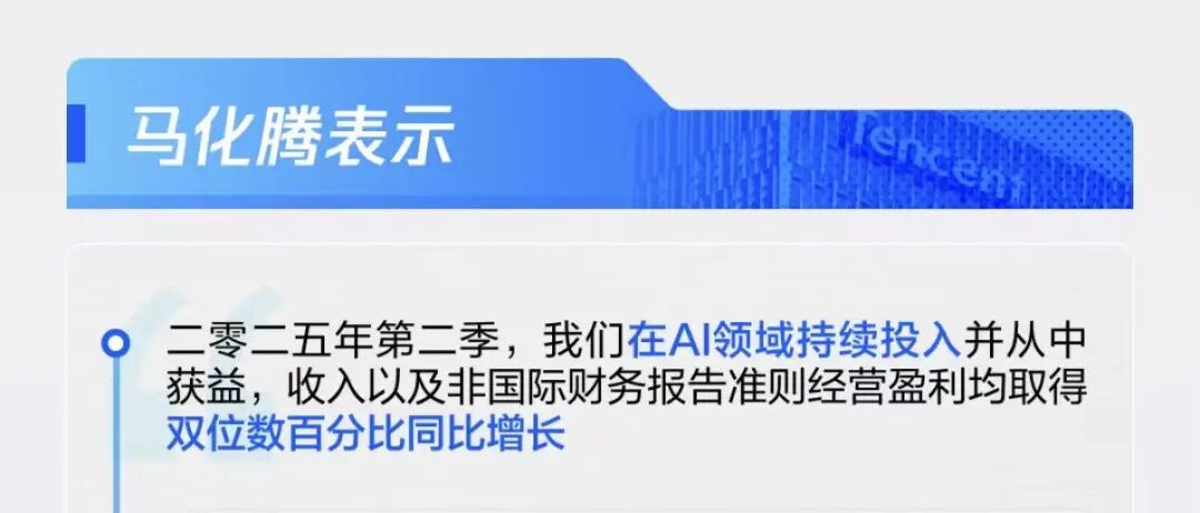 Previously, Ma Huateng emphasized, "In the second quarter, we continued to invest in AI and reaped the benefits."