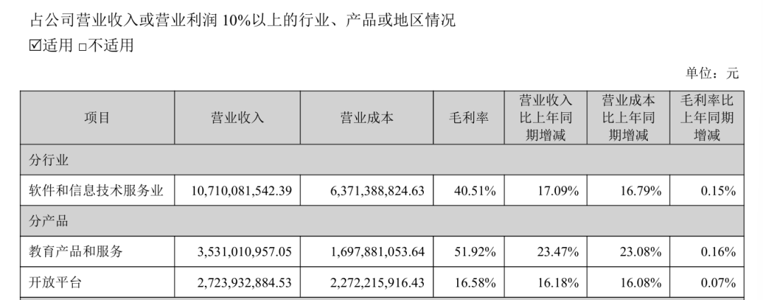 Revenue from educational products and services increased by 23.47% year-on-year, while costs increased by 23.08% year-on-year, resulting in only a 0.16% year-on-year increase in gross profit margin.