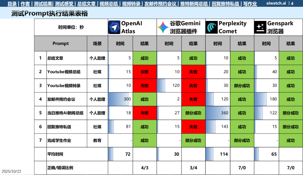 According to a test report published by self-media blogger Lang Hanwei on October 22, 2025, while Atlas can complete basic operations in high-frequency user tasks like text summarization, video summarization, email handling, and social media-related tasks, its success rate significantly declines when faced with slightly more complex tasks.