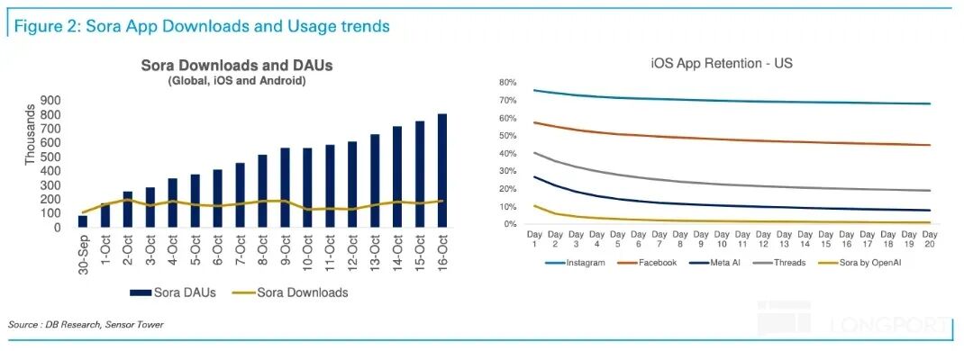 a. Sora's emergence seems daunting, but user retention rates have been underwhelming. We believe most users treat Sora as a tool, generating videos on Sora and posting them on their original social platforms. Thus, the initial market reaction was overblown. For Dolphin Fin's commentary, refer to 'OpenAI Aims to Profit, Who Will Suffer?'