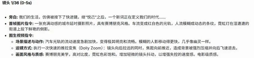 If written too detailedly, the model may not understand and cannot fully express the content within a few seconds;