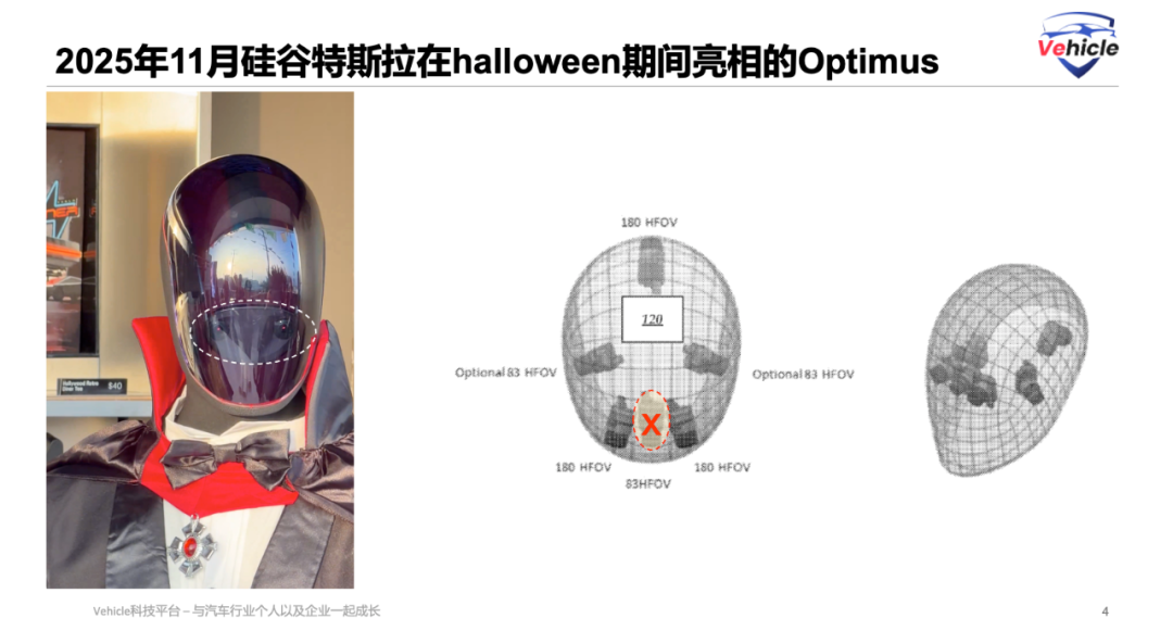 In fact, such a camera configuration appears to be quite logical. The two cameras positioned at 30 degrees and 120 degrees directly in front of Tesla's vehicles are primarily designed for long-distance visibility. However, since humanoid robots typically move at relatively slower speeds compared to cars, there is no necessity for these two cameras on humanoid robots. The side-facing cameras are sufficient to ensure 360-degree visual coverage for the robot.