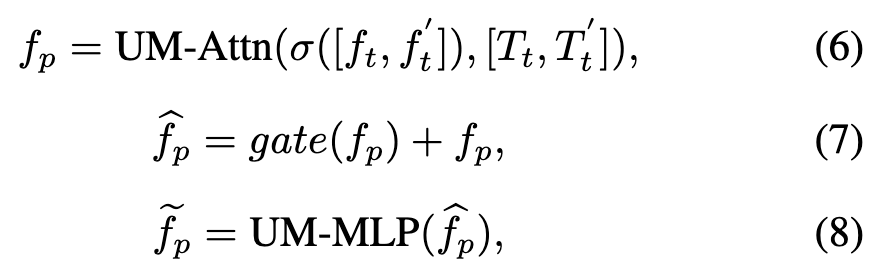 Here, denotes a multimodal cross-attention layer, taking the previous input as the query and the latter as the key and value. represents a multimodal feedforward network layer. is the output feature of the UM-Attn operation in the GMP module. is the output feature of the gating operation in the GMP module. represents the output feature of the GMP module. By adopting this novel gated attention mechanism, our UM-ODTrack can adaptively aggregate multimodal information into a shared visual-semantic feature space, effectively improving the modality perception capability of our tracker and thus achieving, for the first time, truly universal modality tracking.