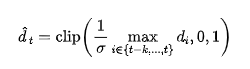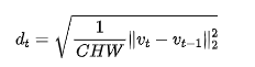 To stabilize this measurement over a short time window (k frames), this paper normalizes it by a statistical scaling factor and clips it to the [0, 1] interval: