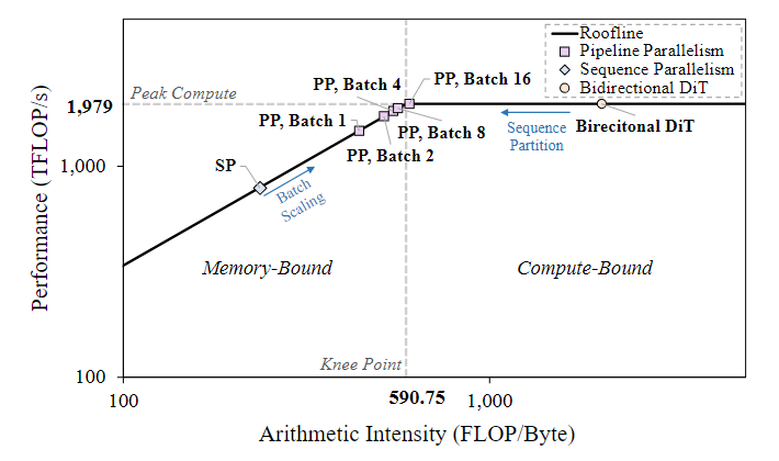 Figure 4. Roofline analysis of sequence parallelism and pipeline orchestration.