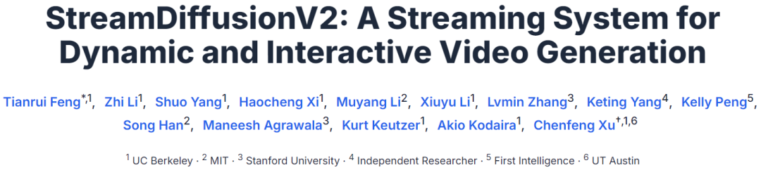 [1] StreamDiffusionV2: A Streaming System for Dynamic and Interactive Video Generation
