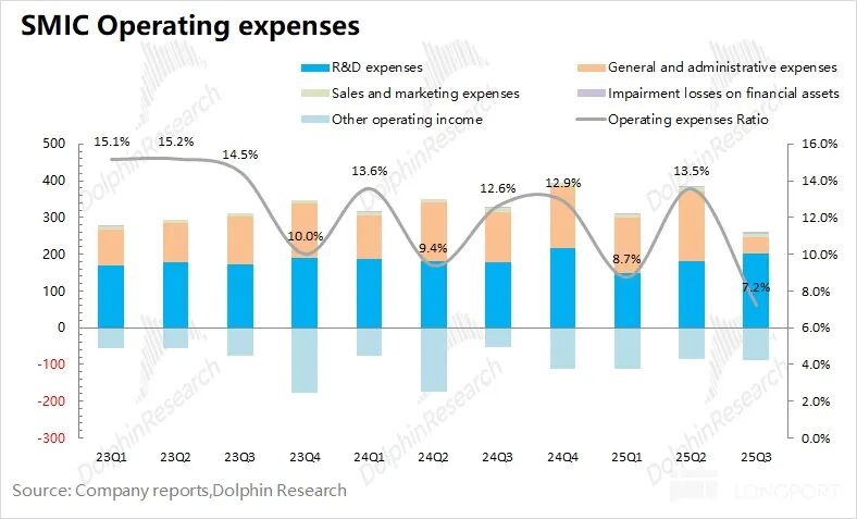 From an operating expense perspective, SMIC's operating expenses for this quarter were $170 million, a significant decrease primarily due to reduced administrative expenses. The operating expense ratio fell to 7.2% this quarter.