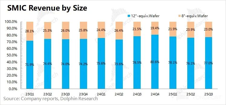 This quarter, SMIC's 12-inch wafer revenue share increased to 77%, primarily due to inventory build-up in downstream markets such as consumer electronics. Specifically, considering the revenue share of both wafer sizes and the company's revenue, SMIC's 12-inch wafer revenue increased by 9.1% quarter-over-quarter, while 8-inch wafer revenue rose by 3.8%.
