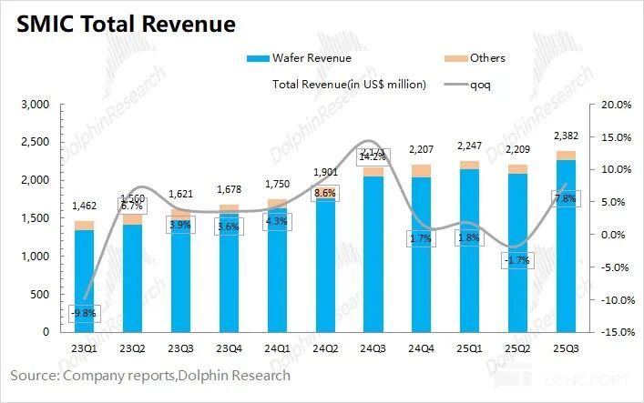 SMIC achieved Q3 2025 revenue of $2.38 billion, up 7.8% QoQ, slightly above guidance (5-7% QoQ). Last quarter's decline resulted from annual production line maintenance and equipment upgrades.
