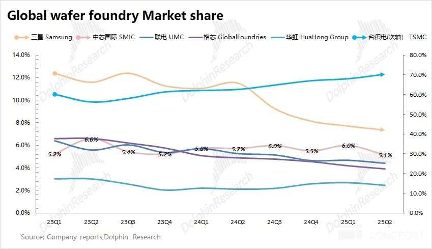 Driven by sustained high investment, SMIC's quarterly wafer capacity has reached 2.6 million units (8-inch equivalent), doubling since late 2018. This capacity growth increasingly meets domestic demand, securing SMIC's position as the third-largest global wafer foundry.