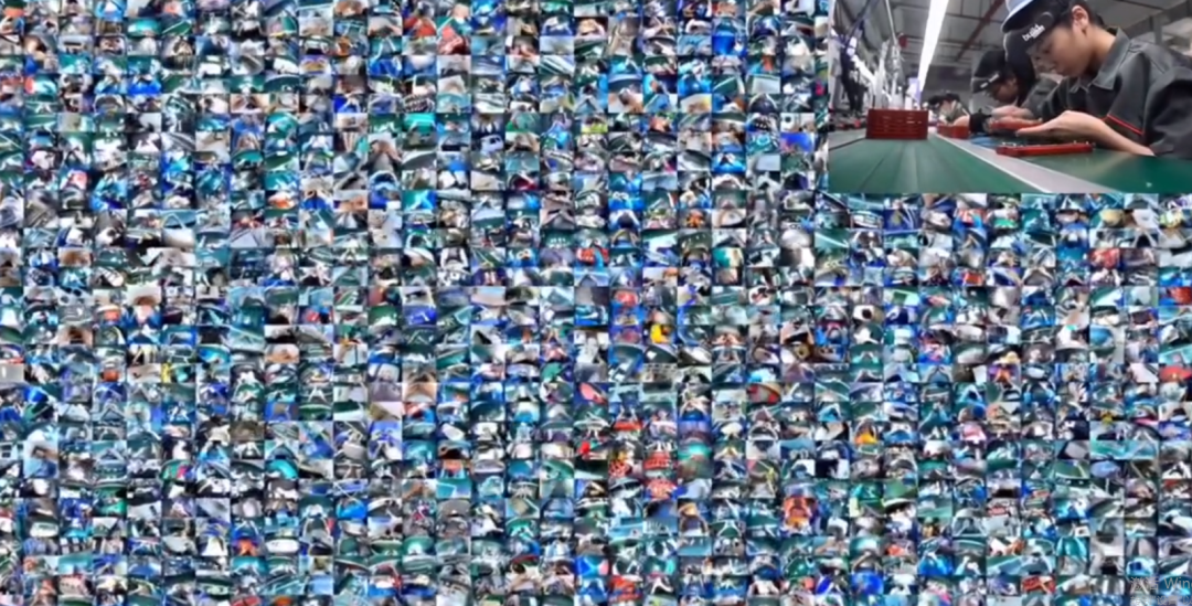 One company went so far as to strap AI cameras to over 2,000 workers, recording their every move on the production line and amassing over 10,000 hours of video footage to train AI systems. Each small square in the footage represents a video of a worker's task.
