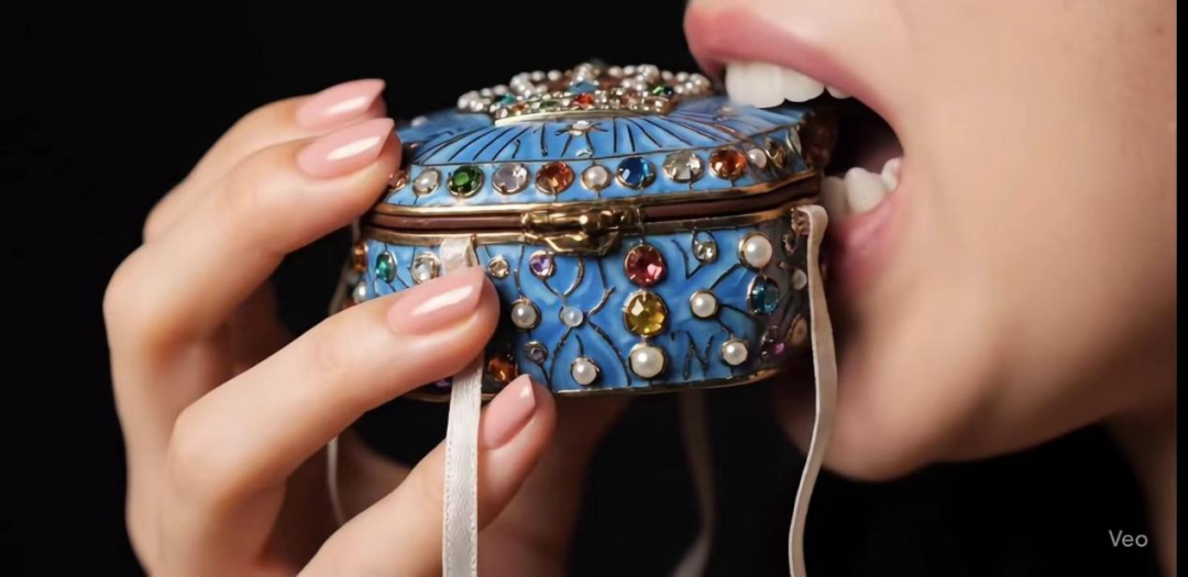 From glass fruits that produce crisp sounds when bitten to jewelry boxes adorned with gemstones, from music-playing crystal balls to plush toys like Labubu and even gold bars... Everything, whether imaginable or not, is becoming 'food' for AI mukbang. These items are being stuffed into the mouths of AI hosts and chewed with apparent ease.