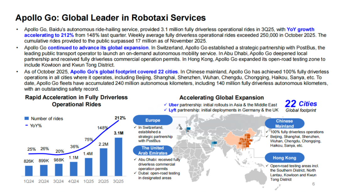 The arrival of the AI era has provided this philosophy with a broader space for practice. When AI business revenue grows by over 50%, when AI cloud becomes a growth engine, and when Apollo Go begins scaled operations and goes global, these signals all point to the same trend: AI is moving from concept to reality, from the laboratory to the market, and from an auxiliary tool to a core capability.