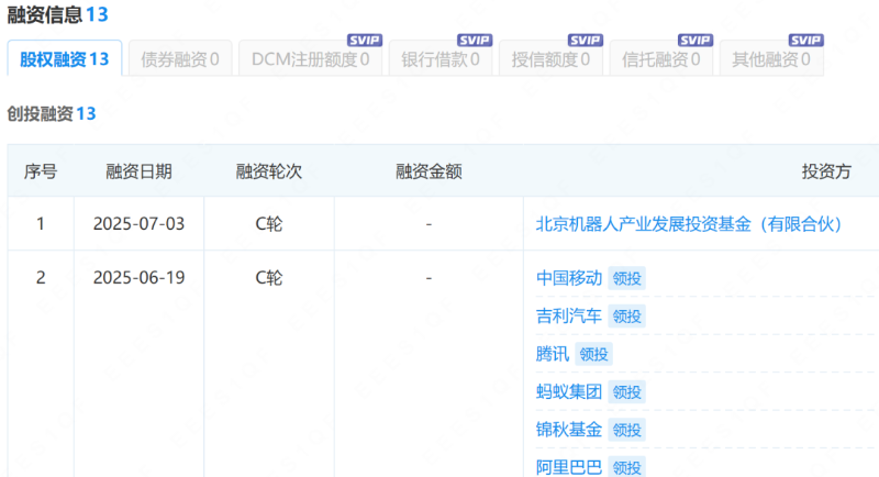 Data from Qichacha shows that Unitree Technology has secured 13 rounds of venture capital financing. The most recent occurred in July this year when the Beijing Robot Industry Development Investment Fund (Limited Partnership), with participation from Beijing state-owned assets, made an additional investment in Unitree Technology; in June, Unitree Technology completed the closing of its Series C financing, which began late last year. This round was led by funds under China Mobile, Tencent, Jinqiu Fund, Alibaba, Ant Group, and Geely Capital, with most existing investors participating in follow-on investments.