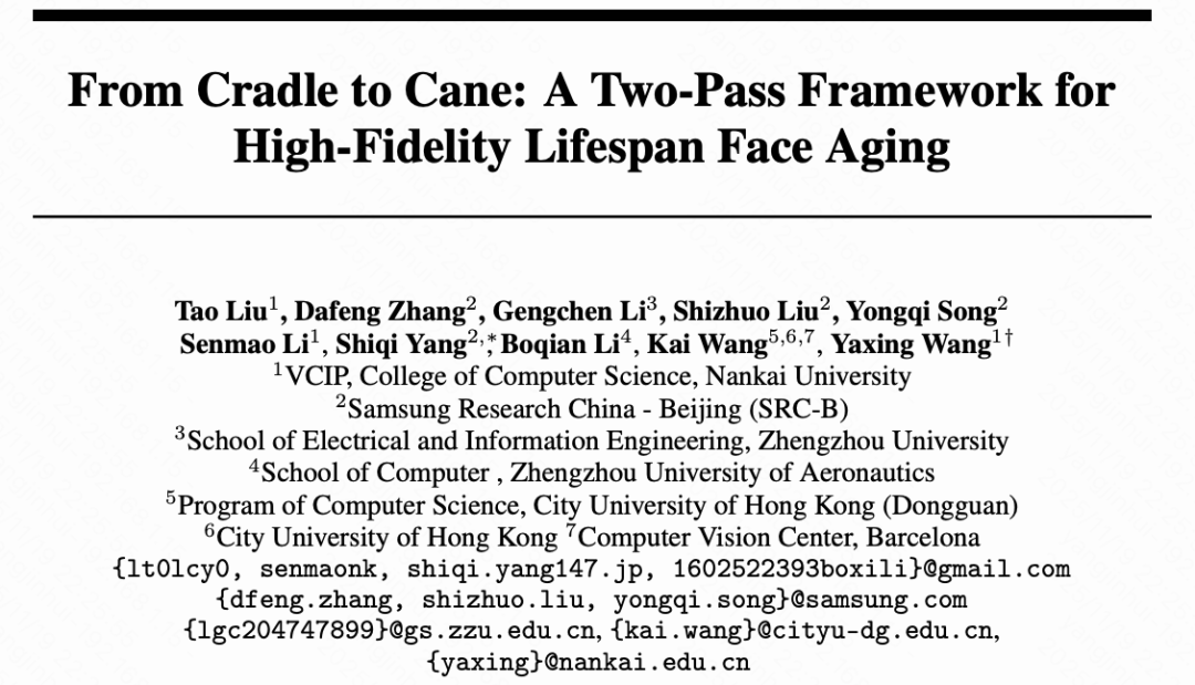 [1] From Cradle to Cane: A Two-Pass Framework for High-Fidelity Lifespan Face Aging