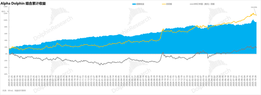 Since the portfolio's inception for testing (March 25, 2022) through last weekend, the absolute return stands at 109%, with an excess return of 94% compared to the MSCI China Index. From a net asset value perspective, starting with an initial virtual asset base of $100 million, the portfolio exceeded $213 million by last weekend.