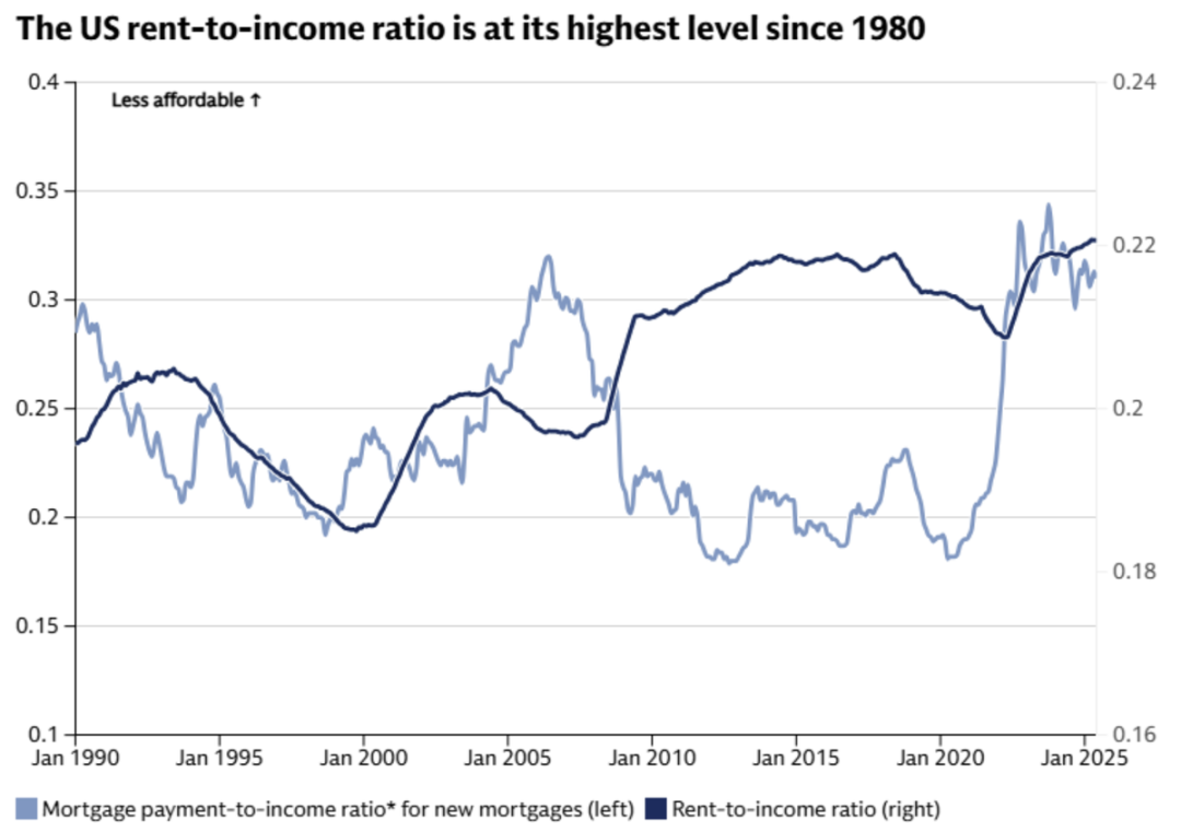 Among various household expenses, rent and mortgages represent the largest share. Currently, monthly rent as a percentage of monthly income has reached a near-record high, accounting for 22% of disposable income. In this context, a slowdown in price growth and households' ability to bear costs are two distinct matters.