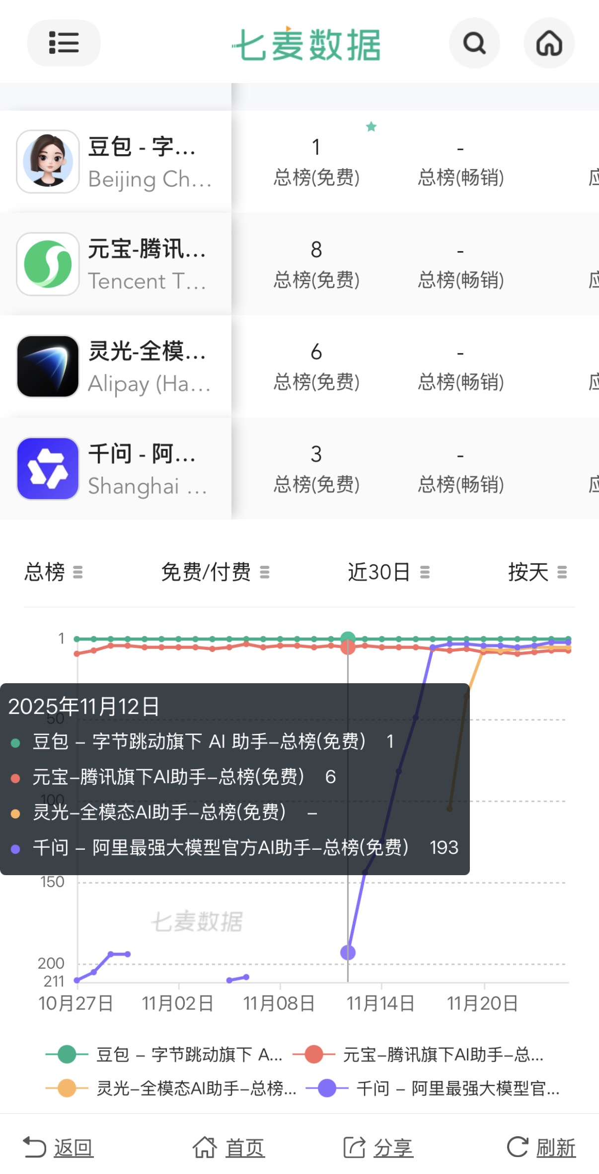 With Qianwen and Lingguang’s relentless sprints, the top ten free apps on the App Store have become crowded, creating an urgent situation for other AI assistant products.