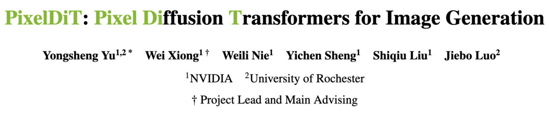 [1] PixelDiT: Pixel Diffusion Transformers for Image Generation