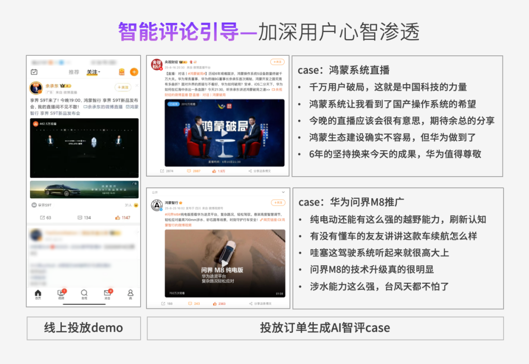 Weibo chooses a more fundamental path—strengthening the underlying infrastructure. Through frontend Lingchuang AI, it builds efficient creative 'potential energy,' while backend AI products (AI-generated comments, intelligent comment guidance, Weibo Business Search Topic Words, Video Semantic Suite) form sustained interactive 'kinetic energy.' Integrated into a synergistic organism, they achieve seamless content production, traffic distribution, and user discussions.