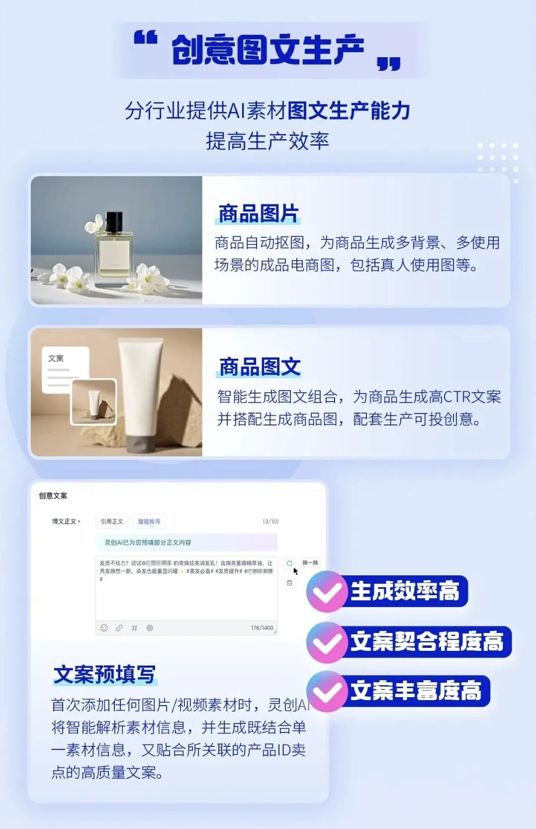 Upon accessing the backend, Lingchuang AI generates multi-version graphic content based on materials, product logic, and platform context. Creators can then directly utilize or further refine these versions, allowing their focus to shift back to expression and judgment.