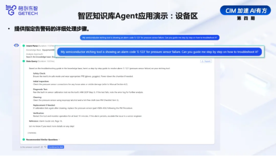It is noteworthy that the IntelliCraft Agent does not exist in isolation but is deeply integrated into GEGUTRON's CIM AI Foundation framework. It collaborates with the Octopus AI Agent platform to build specialized agents focused on equipment knowledge management, links with GT Insights to provide process knowledge support for yield analysis, and integrates with AI FDC to offer knowledge-based insights for fault prediction and maintenance. IntelliCraft is not merely a knowledge retrieval tool but has become the "knowledge brain" of the entire intelligent manufacturing system. It proactively pushes knowledge to those who need it at the right time and in the right way, transforming from "people seeking knowledge" to "knowledge seeking people."