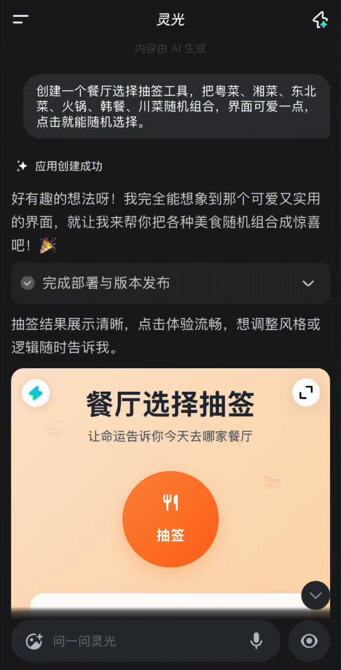 This fully demonstrates that when ordinary people have access to zero-barrier app creation tools, their creative potential is limitless. As AI lowers technical barriers to the cognitive plain, Lingguang’s flash applications ignite a universal spark of 'everyone can develop.'