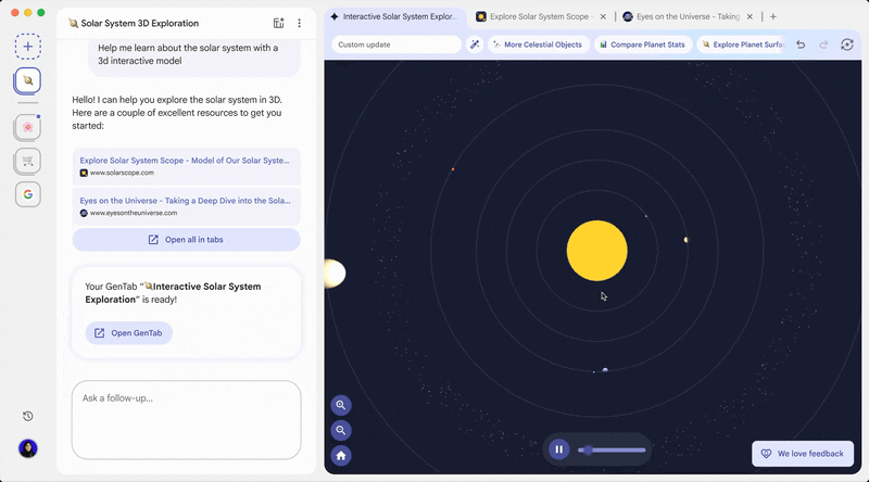 Unlike other AI browsers emphasizing “Chat with your tabs,” GenTabs does not merely satisfy answering questions around tabs or focusing on agency execution. Instead, it further “compiles” these tabs into a new interactive web application.