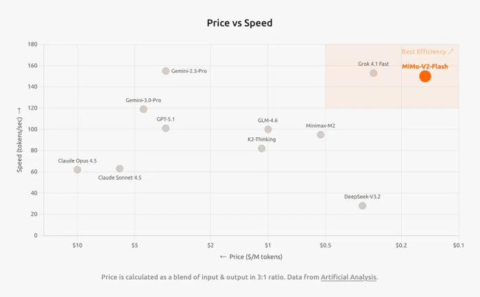 Using Claude Sonnet 4.5 as a comparison metric, Xiaomi's new model costs only 2.5% of Claude's inference price while achieving twice the generation speed.