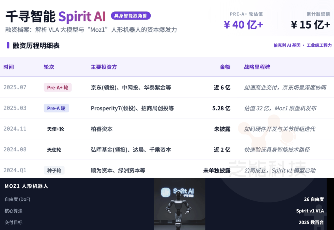 Founded in January 2024, the company's founder and CEO, Han Fengtao (formerly the co - founder and CTO of Luoxi Robotics), and co - founder Gao Yang (a PhD from UC Berkeley, mentored by Pieter Abbeel), focus on embodied intelligence large models (VLA Spirit v1), general - purpose humanoid robots (such as the Moz1), and full - stack software and hardware technologies. It is hailed as the "Chinese version of Figure AI" and has an extremely rapid financing pace.