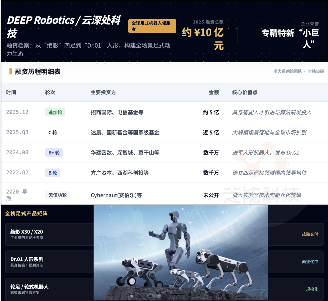 Starting with quadruped robots, the company made a significant push into the humanoid robot sector in 2023 and has achieved large - scale deliveries (accounting for over 60% of global quadruped robot shipments). With projected revenue exceeding 1 billion yuan in 2025, it has become a representative of Hangzhou's "Six Little Dragons" and a unicorn in the humanoid robot industry.
