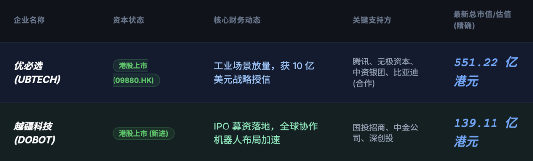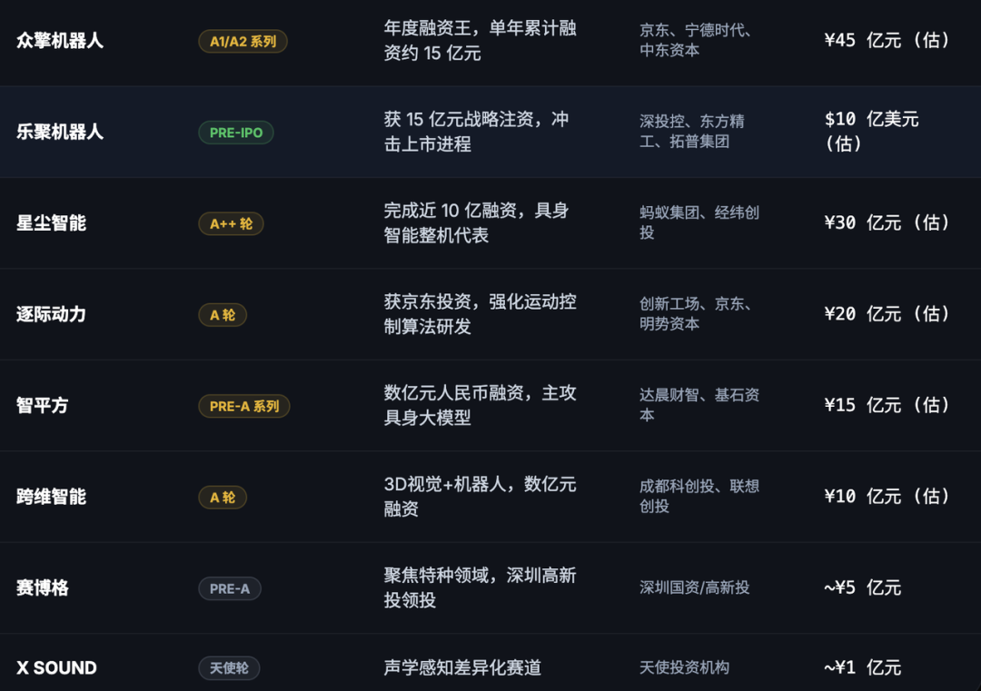 ◎ Application Scenarios: It is used in educational programming, family companionship, commercial exhibitions, and industrial inspections. As of December 2025, it has raised over several billion yuan in funding. In 2025, its Pre - IPO round raised nearly 1.5 billion yuan, setting a record. Its investors include state - owned assets/industrial players such as Shenzhen Investment Holdings and Dongfang Precision.