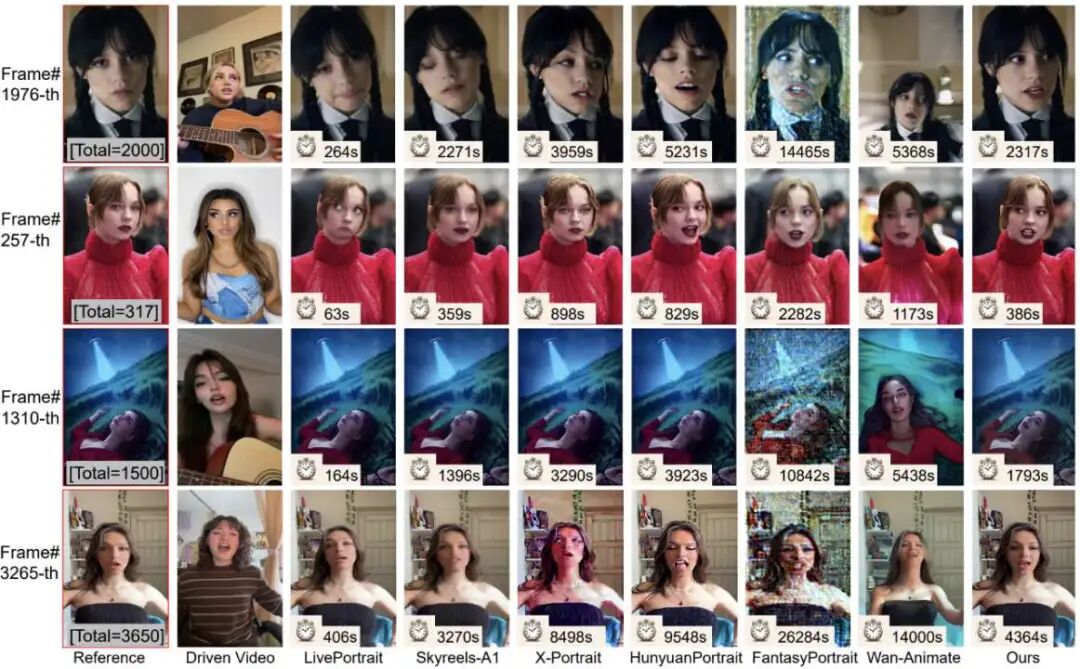 Thus, developing a portrait animation framework that harmonizes speed, duration, and consistency has become an urgent industrial imperative.