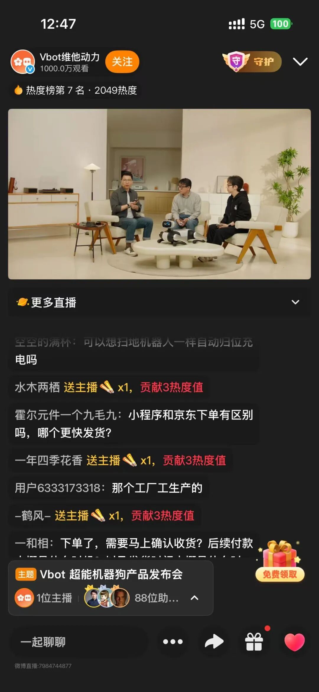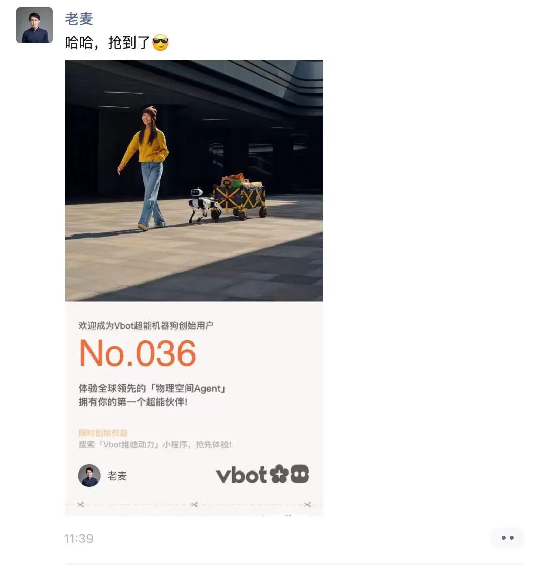 His confidence stems from the official launch of the Vbot super-powered robotic dog on December 23. They have successfully marketed a Vbot robotic dog capable of autonomous navigation, understanding human commands, and operating without a remote control, all priced under RMB 10,000, with a founding member price of RMB 9,988.