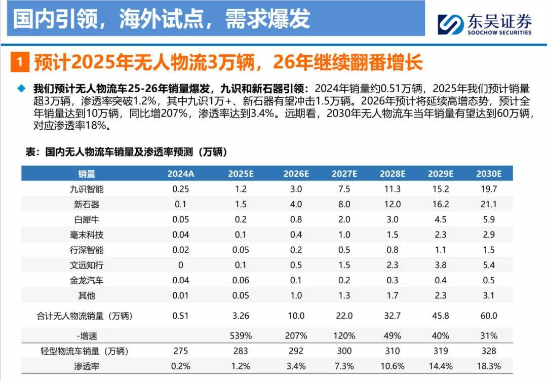 From a short-term perspective, industry procurement volume is expected to increase to 100,000 units in 2026 (predicted by Soochow Securities), with leading enterprises' production capacity and resource advantages further amplifying. Neolix aims to deliver 40,000-50,000 units in 2026, while Zelostech targets 30,000 units, with their combined market share expected to remain above 80%.