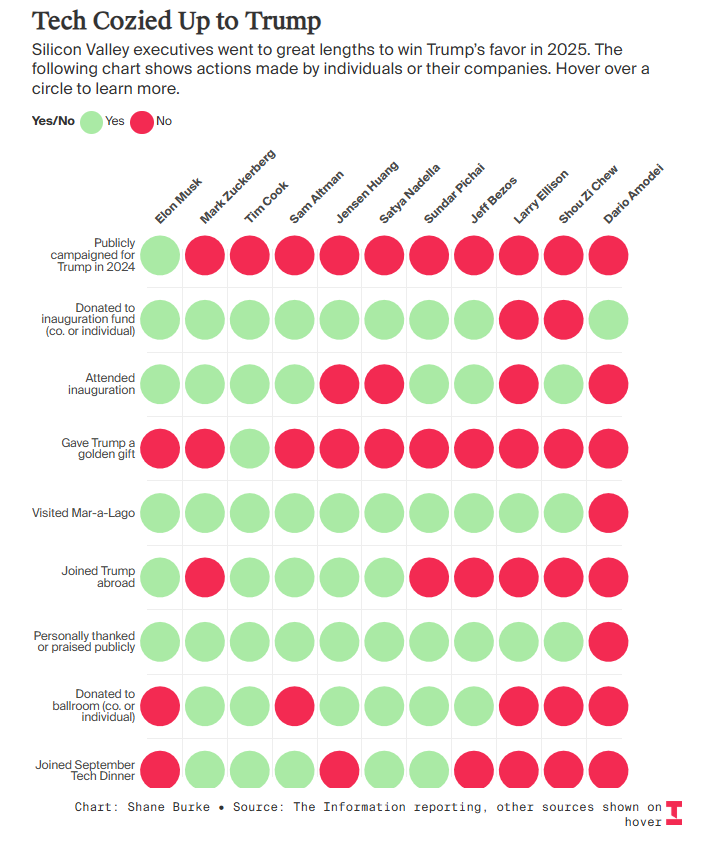 In 2025, with the Trump administration at the helm, tech giants have embraced political pragmatism with gusto. From Cook to Zuckerberg, Silicon Valley executives have courted the White House to secure favorable AI regulations and government contracts.