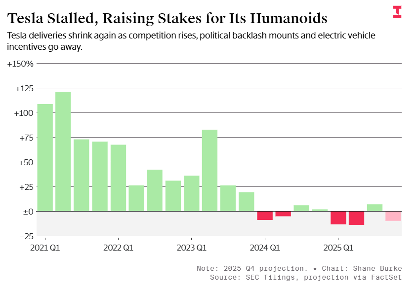 Plagued by intensifying competition and fading subsidies, Tesla has seen sales decline for the second consecutive year. As Waymo expands its real-world footprint, Musk has entirely shifted his narrative to Cybercab and humanoid robots, using distant sci-fi visions to mask current weaknesses.