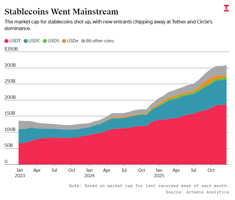 With the signing of GENIUS (legislation that catalyzes the mainstream adoption of stablecoins), stablecoins have shed their gray-zone status. Circle went public, traditional financial institutions jumped on the bandwagon, and stablecoin market caps soared this year.