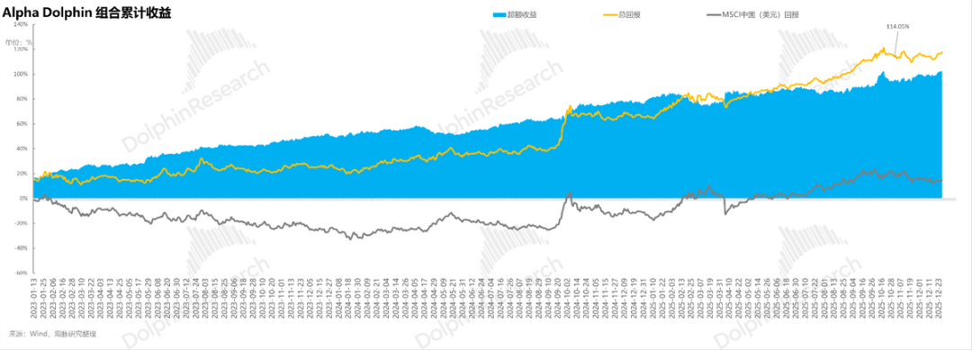 From the start of portfolio combination testing (March 25, 2022) until last weekend, the portfolio's absolute return was 117.5%, with an excess return of 103% compared to the MSCI China Index. From the perspective of net asset value, Dolphin Finance's initial virtual assets were valued at $100 million. As of last weekend, they exceeded $220 million, basically reaching a historic high at the end of the year.