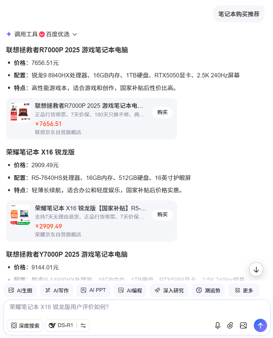 During the discussion, Zhang Lihong, the head of Baidu's commercial products, revealed that the GMV growth of e - commerce product recommendations within Baidu's AI ecosystem has been "extremely rapid." For instance, when a user expresses an interest in buying a specific laptop, the chatbot can generate a list of recommendations and even include promotional offers.