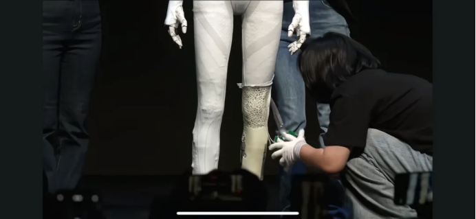 Faced with a barrage of skepticism, during the evening's press conference, XPENG's staff opted for a bold demonstration. They directly sliced open IRON's flexible 'skin' and 'muscle' layers on its calf while the robot was in operation. The exposed mechanical skeleton continued its catwalk under the spotlight, leaving no room for doubt.
