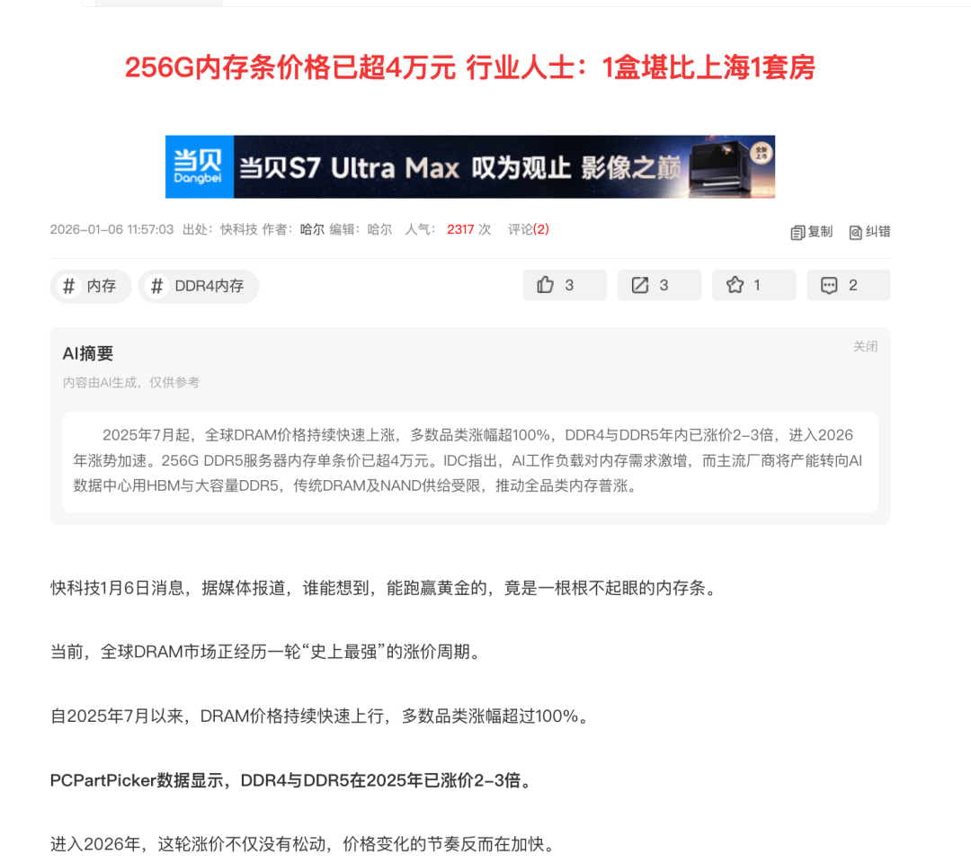 Regardless of which judgment you lean toward, one reality is becoming clear: a 40,000-yuan memory module is essentially a 'computing power tax' levied at the dawn of the computing power era.